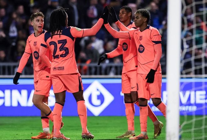 国王杯第3轮的一场比赛展开争夺,巴萨做客挑战CD瓜达拉哈拉。由于双方的实力差距实在是太大了,比赛从一开始就进入了巴萨的节奏。但是,攻势如潮的巴萨迟迟无法把机会转化为进球。埃里克-加西亚、费尔明、拉什福德、亚马尔和巴尔德吉等人的射门都没有打进。上半场的比赛完全一边倒。但是,半场结束比分竟然依然是0-0!